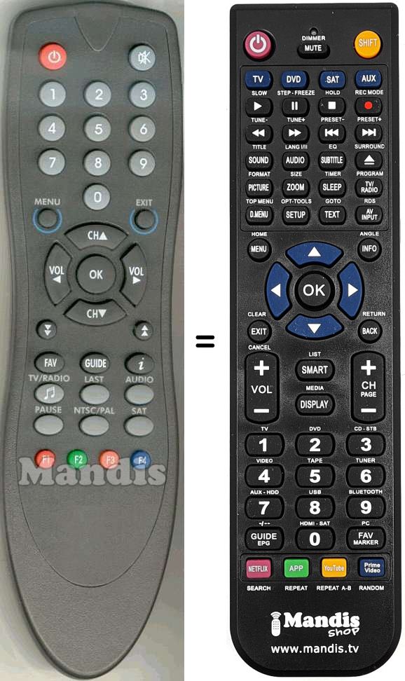 Telecomando che sostituisce l’originale DVB3001R in tutte le sue funzioni.