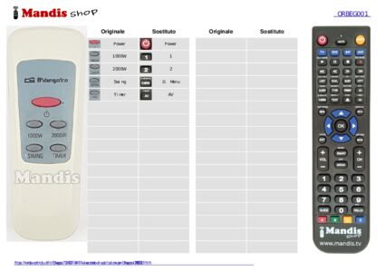 Inizio > Marche > Telecomandi Orbegozo > Telecomando per ORBEGOZO ORBEG001