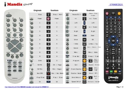È incluso un documento per aiutarti a utilizzare facilmente il nuovo telecomando, indicando la corrispondenza dei pulsanti.