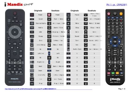 Di seguito, vi mostreremo la corrispondenza tra ciascun pulsante del telecomando originale e il pulsante che svolge la stessa funzione sul telecomando di sostituzione. In alcuni casi, potrebbe essere necessario premere il tasto SHIFT prima di premere un altro pulsante per eseguire determinate azioni. Queste funzioni aggiuntive sono spesso poco utilizzate e sono incluse per facilitare la comprensione del telecomando di sostituzione, o perché il telecomando originale ha più pulsanti rispetto al suo equivalente.