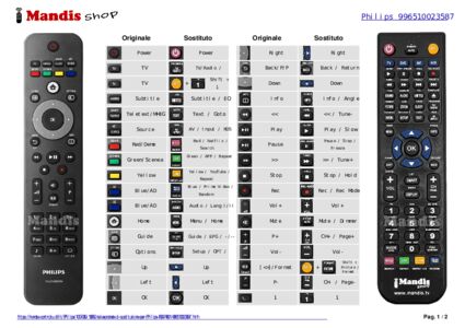 Di seguito, vi mostreremo la corrispondenza tra ciascun pulsante del telecomando originale e il pulsante che svolge la stessa funzione sul telecomando di sostituzione. In alcuni casi, potrebbe essere necessario premere il tasto SHIFT prima di premere un altro pulsante per eseguire determinate azioni. Queste funzioni aggiuntive sono spesso poco utilizzate e sono incluse per facilitare la comprensione del telecomando di sostituzione, o perché il telecomando originale ha più pulsanti rispetto al suo equivalente.