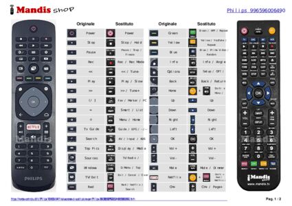 Questo telecomando esegue tutte le funzioni del telecomando originale: Power, Stop, Pause, Rec, <<, Play, >>, (/ ], =, ☼, Tv Guide, Search, Top Pics, Sources, Windows, TV/Exit, Red, Green, Yellow, Blue, Info, Options, Up, Down, Left, Right, OK, Back, Home, Vol+, Vol-, Netflix, Mute, CH+, CH-, 1, 2, 3, 4, 5, 6, 7, 8, 9, 0, Subtitle, Text