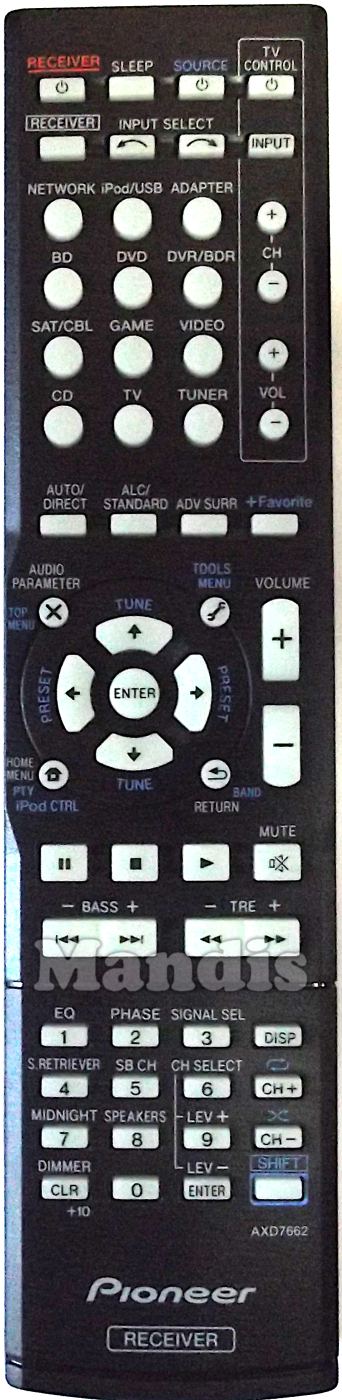 Telecomando originale AXD7662 (8300766200010IL) della marca Pioneer. Si tratta di un modello originale di telecomando.