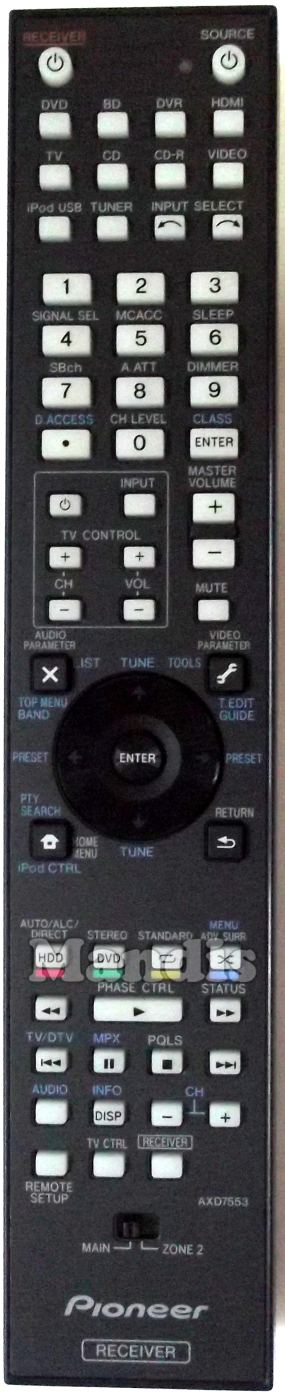 Telecomando originale AXD7553 che serve per av receiver della marca Pioneer. Si tratta di un modello originale di telecomando.