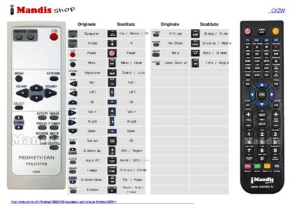 Di seguito, vi mostreremo la corrispondenza tra ciascun pulsante del telecomando originale e il pulsante che svolge la stessa funzione sul telecomando di sostituzione. In alcuni casi, potrebbe essere necessario premere il tasto SHIFT prima di premere un altro pulsante per eseguire determinate azioni. Queste funzioni aggiuntive sono spesso poco utilizzate e sono incluse per facilitare la comprensione del telecomando di sostituzione, o perché il telecomando originale ha più pulsanti rispetto al suo equivalente.