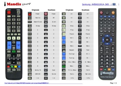 Di seguito, vi mostreremo la corrispondenza tra ciascun pulsante del telecomando originale e il pulsante che svolge la stessa funzione sul telecomando di sostituzione. In alcuni casi, potrebbe essere necessario premere il tasto SHIFT prima di premere un altro pulsante per eseguire determinate azioni. Queste funzioni aggiuntive sono spesso poco utilizzate e sono incluse per facilitare la comprensione del telecomando di sostituzione, o perché il telecomando originale ha più pulsanti rispetto al suo equivalente.