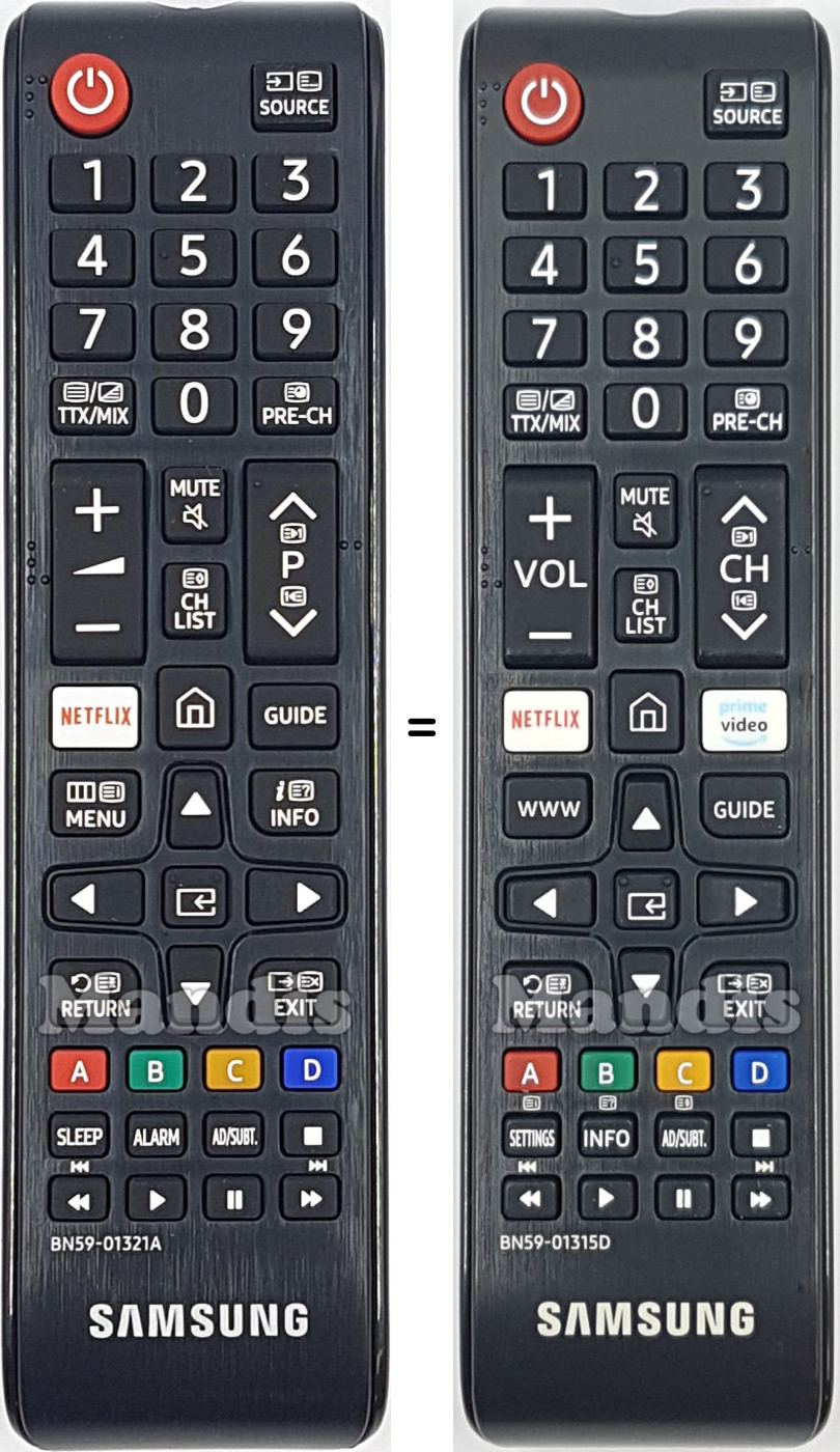 Telecomandi equivalenti che sostituiscono in tutte le funzioni il telecomando SAMSUNG BN59-01315D: