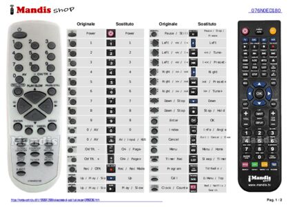 Di seguito, vi mostreremo la corrispondenza tra ciascun pulsante del telecomando originale e il pulsante che svolge la stessa funzione sul telecomando di sostituzione. In alcuni casi, potrebbe essere necessario premere il tasto SHIFT prima di premere un altro pulsante per eseguire determinate azioni. Queste funzioni aggiuntive sono spesso poco utilizzate e sono incluse per facilitare la comprensione del telecomando di sostituzione, o perché il telecomando originale ha più pulsanti rispetto al suo equivalente.
