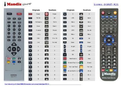 Inizio > Marche > Telecomandi Siemens > Telecomando per Siemens Gigaset-RC31