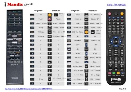 Questo telecomando sostituisce la maggior parte delle funzioni del tuo RM-ADP018 (148014411). Non è un telecomando universale, ma una copia con la maggior parte dei tasti e delle funzioni del tuo originale.
