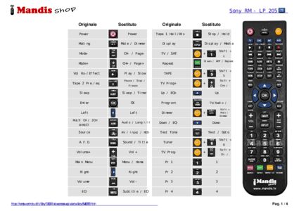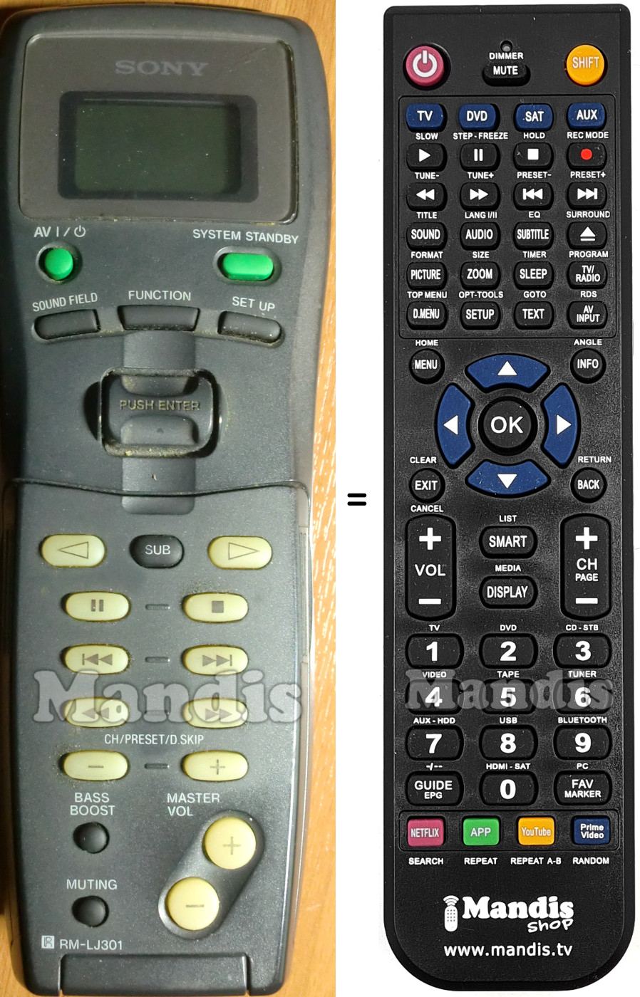 Questo telecomando sostituisce completamente il tuo RM-LJ301 (147572611) e offre tutte le funzioni dell'originale.