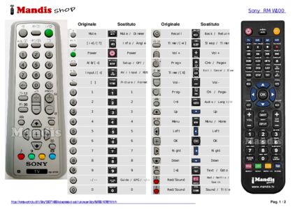 Questo telecomando sostituisce completamente il tuo RM-W100 (147800711) e offre tutte le funzioni dell'originale.