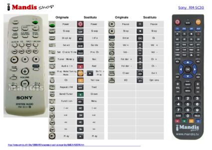 Di seguito, vi mostreremo la corrispondenza tra ciascun pulsante del telecomando originale e il pulsante che svolge la stessa funzione sul telecomando di sostituzione. In alcuni casi, potrebbe essere necessario premere il tasto SHIFT prima di premere un altro pulsante per eseguire determinate azioni. Queste funzioni aggiuntive sono spesso poco utilizzate e sono incluse per facilitare la comprensione del telecomando di sostituzione, o perché il telecomando originale ha più pulsanti rispetto al suo equivalente.