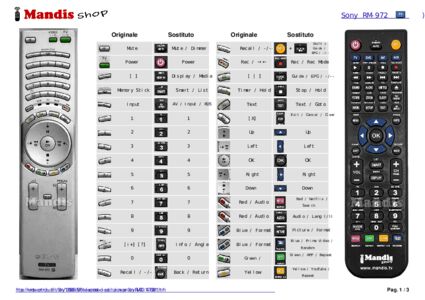 Questo telecomando sostituisce completamente il tuo RM-972 (147763811) e offre tutte le funzioni dell'originale.