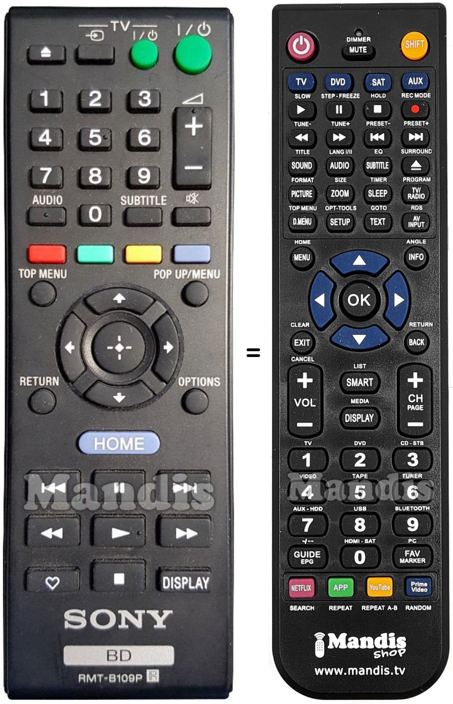 Questo telecomando sostituisce completamente il tuo RMT-B109P e offre tutte le funzioni dell'originale.