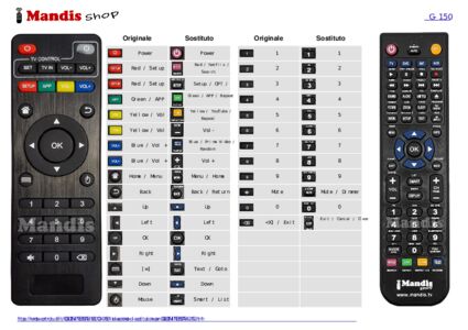 Inizio > Marche > Telecomandi TVBOX > Telecomando per TVBOX G-150 > Distribuzione interattiva dei tasti TVBOX G-150