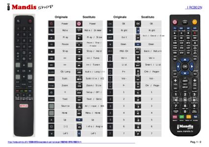 È incluso un documento per aiutarti a utilizzare facilmente il nuovo telecomando, indicando la corrispondenza dei pulsanti.