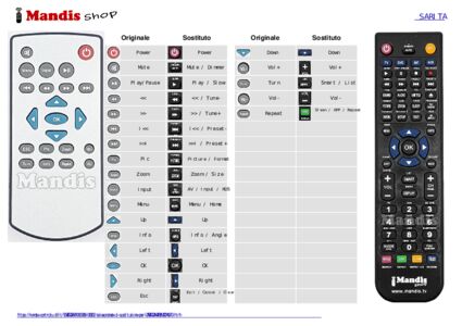 Di seguito, vi mostreremo la corrispondenza tra ciascun pulsante del telecomando originale e il pulsante che svolge la stessa funzione sul telecomando di sostituzione. In alcuni casi, potrebbe essere necessario premere il tasto SHIFT prima di premere un altro pulsante per eseguire determinate azioni. Queste funzioni aggiuntive sono spesso poco utilizzate e sono incluse per facilitare la comprensione del telecomando di sostituzione, o perché il telecomando originale ha più pulsanti rispetto al suo equivalente.