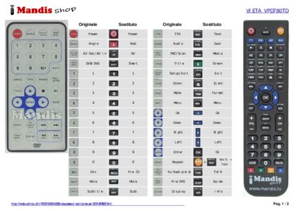Inizio > Marche > Telecomandi VIETA > Telecomando per VIETA VPD780TD