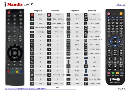 Questo telecomando sostituisce completamente il tuo RC2712 (30073061) e offre tutte le funzioni dell'originale.