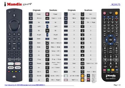 Inizio > Marche > Telecomandi ok. > Telecomando per ok. RC39175